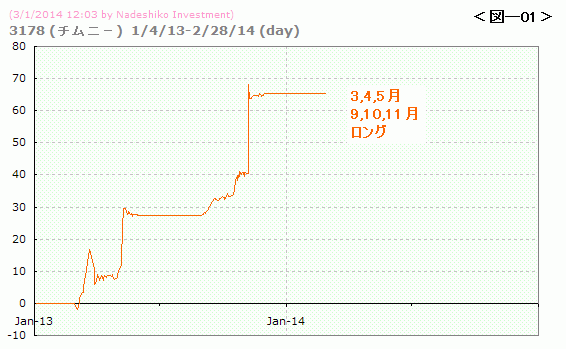 アノマリー度は過去5年のデータから、月別に上げ下げ傾向の強弱を調べたものです。データは、2014年2月28日の引け時点のものです。月別のアノマリーが優待によるものか季節性によるものかは不明です。