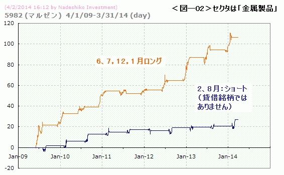 アノマリー度は過去5年のデータから、月別に上げ下げ傾向の強弱を調べたものです。データは、2014年3月31日の引け時点のものです。月別のアノマリーが優待によるものか季節性によるものかは不明です。