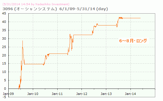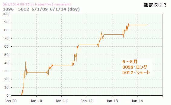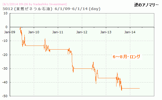アノマリー度は過去5年のデータから、月別に上げ下げ傾向の強弱を調べたものです。データは、2014年5月30日の引け時点のものです。月別のアノマリーが優待によるものか季節性によるものか、あるいは偶然なのか、は不明です。