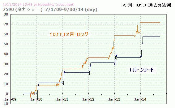 アノマリー度は過去5年のデータから、月別に上げ下げ傾向の強弱を調べたものです。データは、2014年9月30日の引け時点のものです。月別のアノマリーが優待によるものか季節性によるものか、あるいは偶然なのか、は不明です。