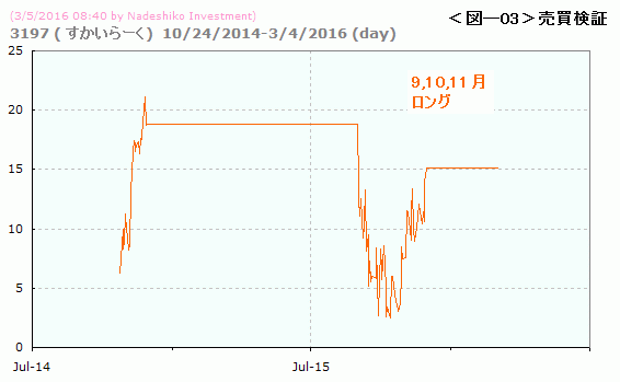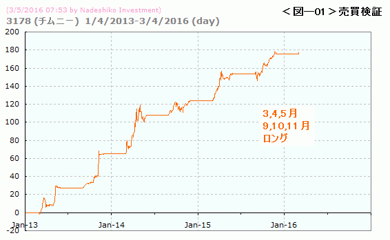 アノマリー度は過去5年のデータから、月別に上げ下げ傾向の強弱を調べたものです。データは、2016年2月29日の引け時点のものです。月別のアノマリーが優待によるものか季節性によるものか、あるいは偶然なのか、は不明です。
