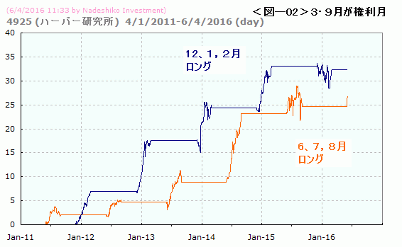 アノマリー度は過去5年のデータから、月別に上げ下げ傾向の強弱を調べたものです。データは、2016年5月31日の引け時点のものです。月別のアノマリーが優待によるものか季節性によるものか、あるいは偶然なのか、は不明です。